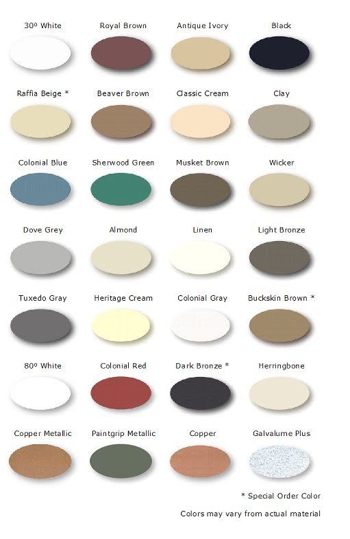 At Pioneer Gutters, we offer 6" seamless aluminum & copper gutters. We have both K-Style and half-round gutters available in the following colors: